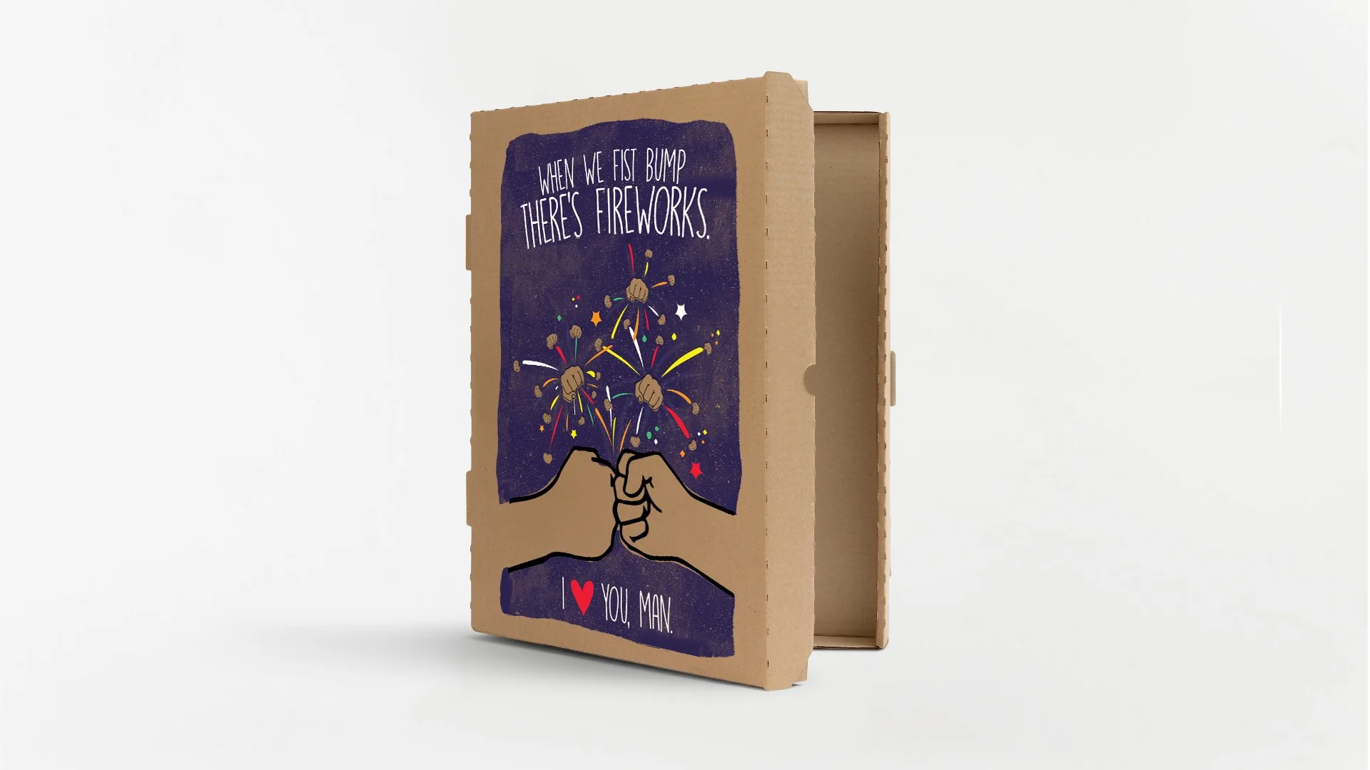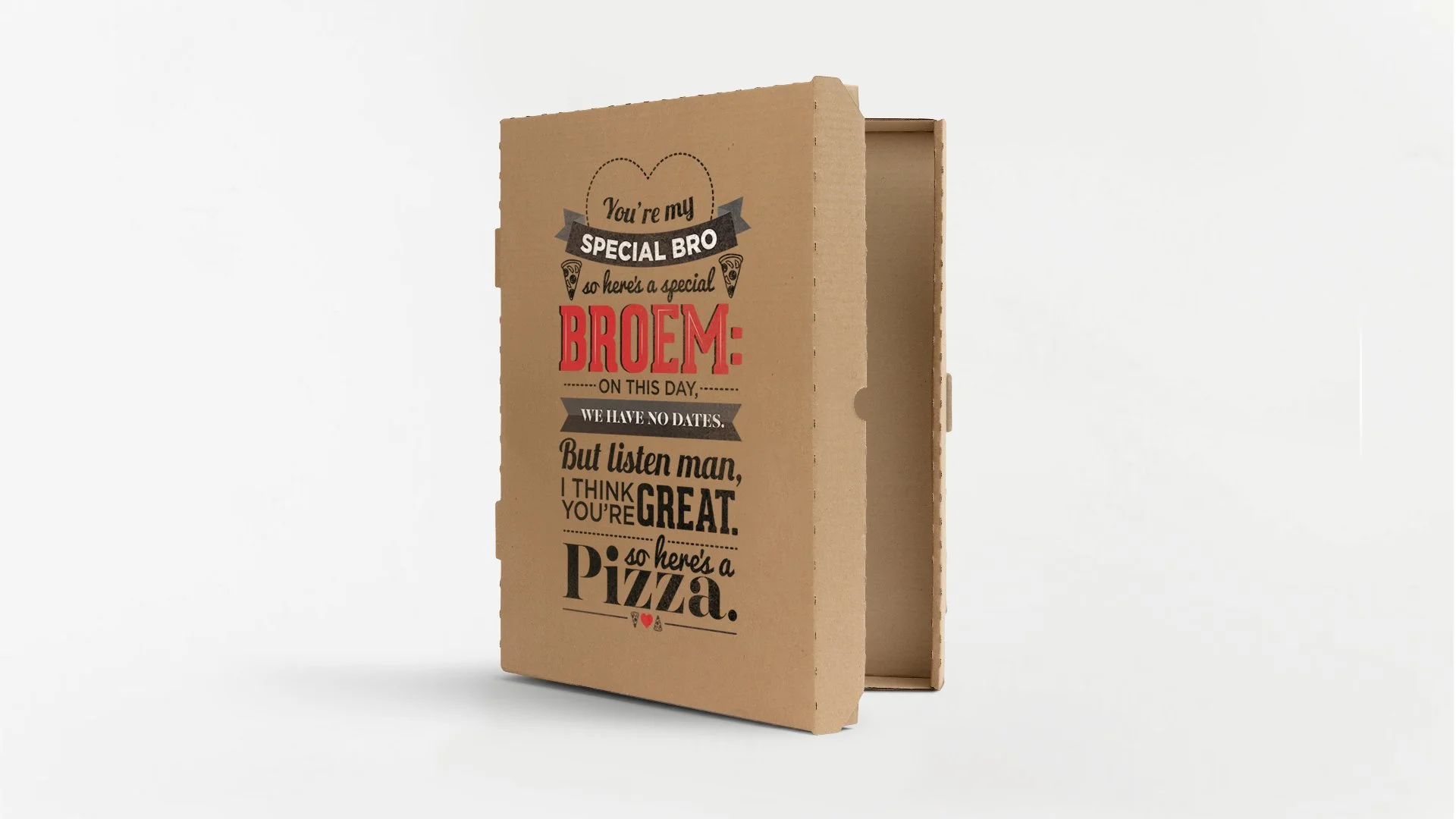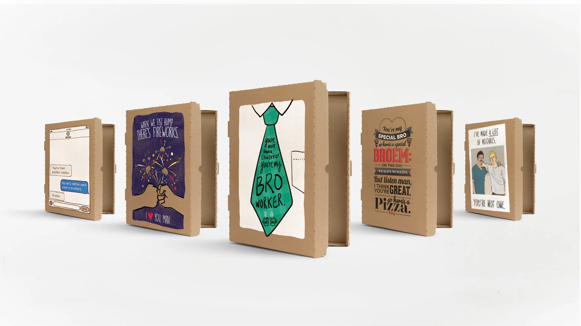 Turned sideways, a Panormous pizza box makes a great Valentine’s Day card. With this brilliant insight, we made a fun little social campaign where we asked bros to nominate their Bromance online, for a chance to win some pizza. The Bro–LOVE was real.