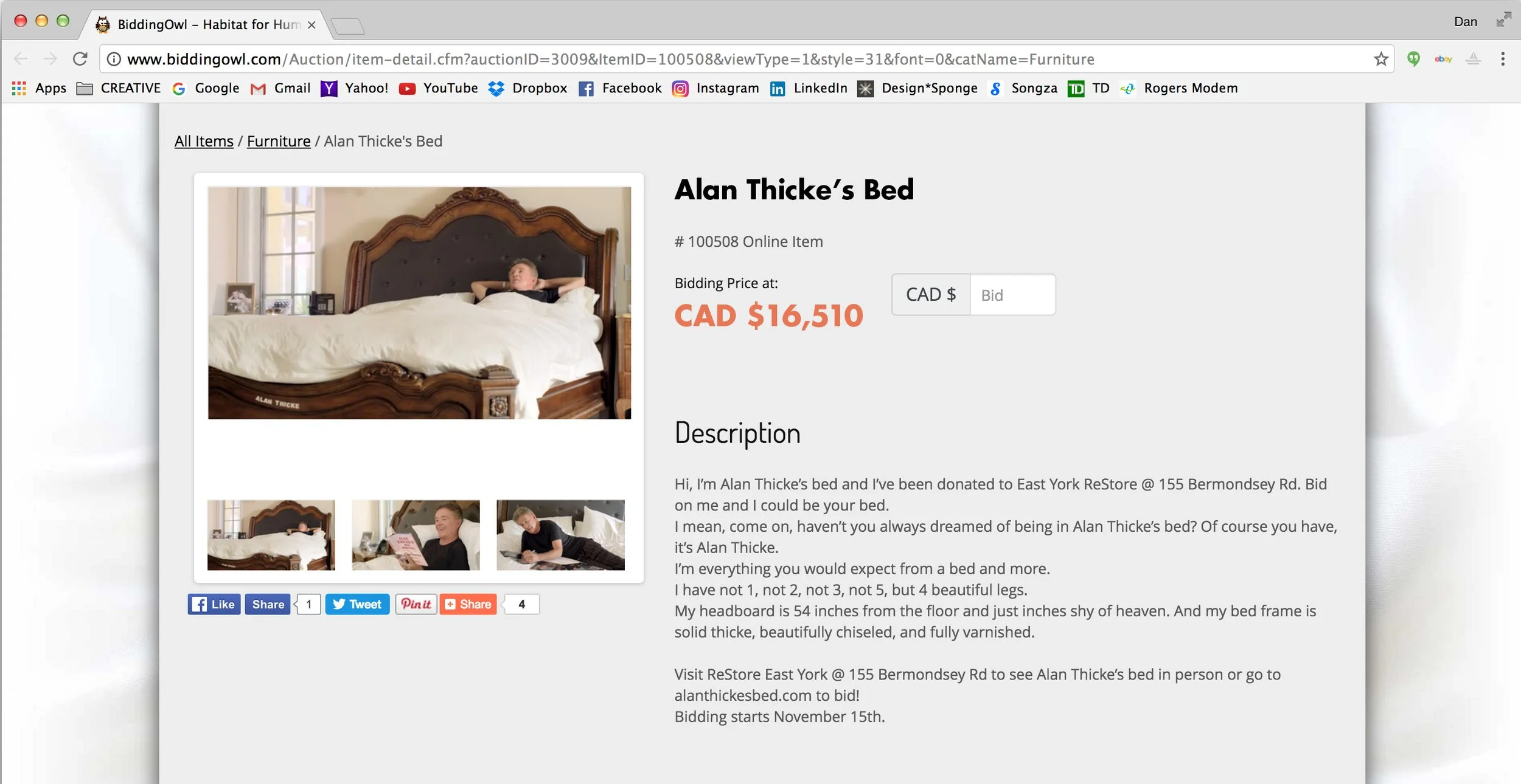He was auctioning it off to raise money and awareness for Habitat for Humanity’s ReStore chain. So we shipped it from his home in Santa Barbara, california to Toronto, Canada.